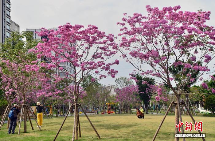 11月19日,正在祸修祸州祸新东道的心袋花园内乱,紫花风铃木入进衰花期,紫色的花朵将冬季的花园打扮的如梦如幻,成为乡市1景。中新社记者 弛斌 摄